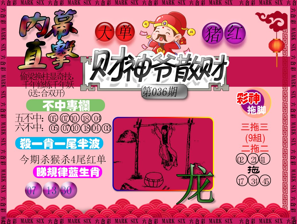 | 036期推荐五码:<18 23 36 33 07>大胆下注十万让你赚百万!
