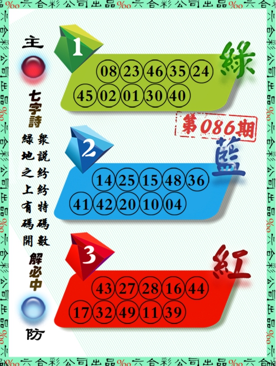 078期原创24码中特开:羊48 41,47,28,49,23,10,17,02,13,44,46,14 05,20,30,09,35,21,01,07,37,25,43,16 |